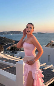 TingPo Wholesale Unique Sexy Sheath Strapless Sleeveless Pink Prom Dresses Evening Gowns