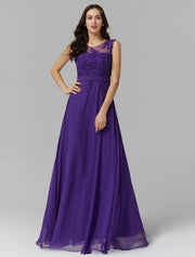Wholesale A-Line Chinese Style Dress Wedding Guest Prom Floor Length Sleeveless Illusion Neck Chiffon V Back with Beading Appliques - Grape / US 2 / UK 6 / EU 32