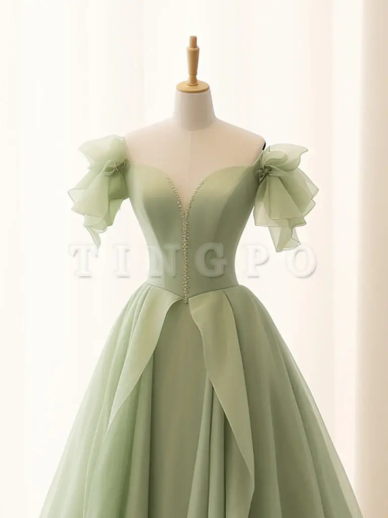 Wholesale A-Line Green Tulle Long Prom Dress Green Tulle Long Formal Dress gowns evening dresses