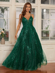 Wholesale A-Line/Princess Lace Applique V-neck Sleeveless Floor-Length Dresses
