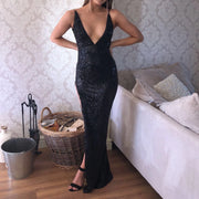 Wholesale Black Criss-cross Sexy Split Latest Shiny Floor-length Mermaid Sleeveless Prom Dresses - US 2 / UK 6 / EU 32