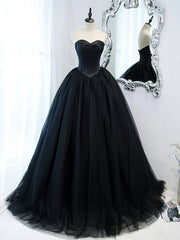 Wholesale Black Sweetheart Neck Tulle Long Prom Dress Black Formal Evening Dress gowns evening dresses