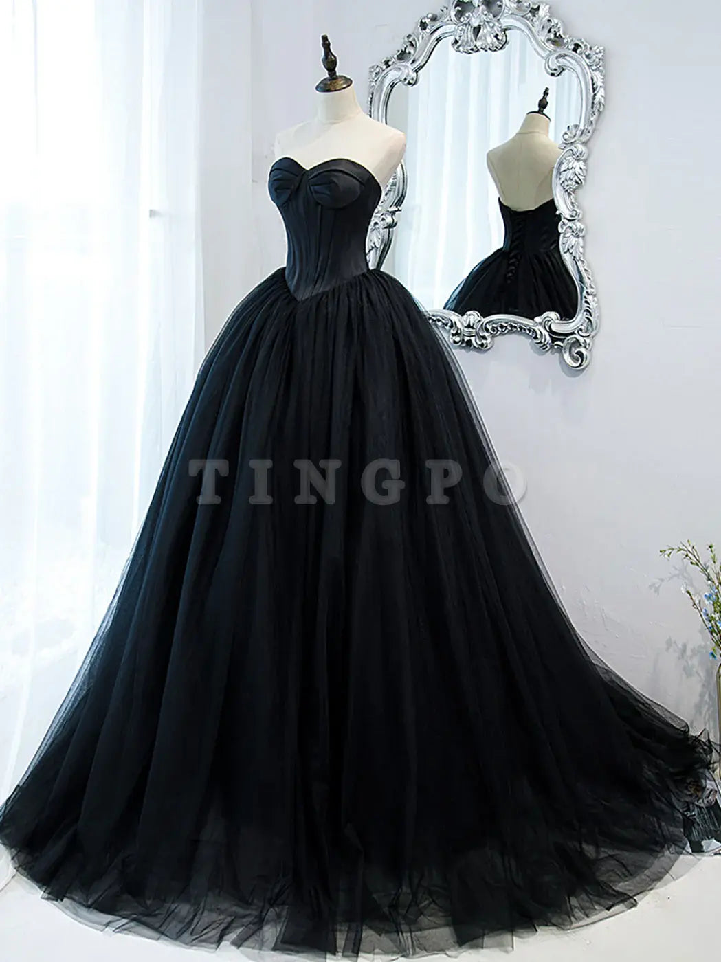 Wholesale Black Sweetheart Neck Tulle Long Prom Dress Black Formal Evening Dress gowns evening dresses - US 2 / UK 6 / EU 32