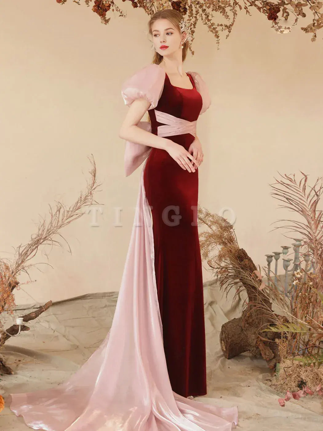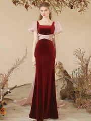 Wholesale Burgundy Mermaid Velvet Long Prom Dress Burgundy Formal Dresses gowns evening dresses - US 2 / UK 6 / EU 32