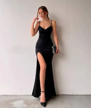 Wholesale Elegant Sheath Straps Black Slit Prom Dresses Evening Dress With Split gowns evening dresses