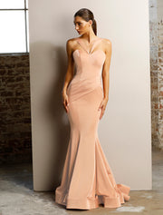 Wholesale Mermaid / Trumpet Minimalist Elegant Engagement Formal Evening Birthday Dress Halter Neck Sleeveless Floor Length Stretch Satin with Ruched - Pearl Pink / US 2 / UK 6 / EU 32