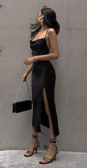 Wholesale Pretty Sheath Spaghetti Straps Slit Black Prom Dresses Evening Dress formal wear dresses - US 2 / UK 6 / EU 32