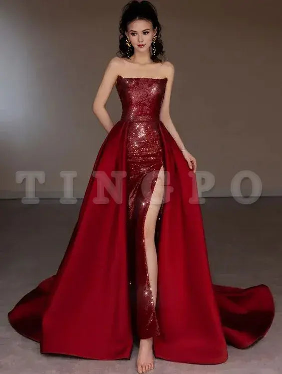 Wholesale Sexy Mermaid Red Sleeveless Long Sequin Prom Dress Evening Dresses gowns evening dresses - US 2 / UK 6 / EU 32