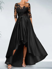 Wholesale Sheath / Column Cocktail Black Dress Luxurious Dress Formal Wedding Guest Asymmetrical 3/4 Length Sleeve Off Shoulder Pocket Satin with Beading Appliques - US 2 / UK 6 / EU 32