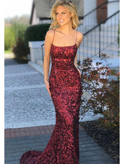 Wholesale Sheath/Column Square Neckline Sleeveless Sweep Train Sequined Dress