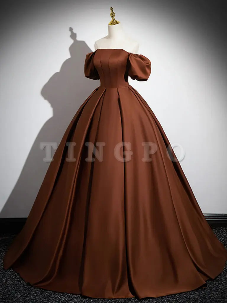 Wholesale Simple Satin Brown Long Prom Dress Brown Long Evening Dress gowns evening dresses  - US 2 / UK 6 / EU 32