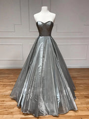 Wholesale Simple sweetheart neck satin gray long prom dress gray formal party dress gowns evening dresses