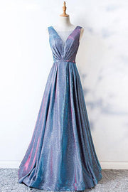 Wholesale V Neck Satin Blue Lace up Ruffles A Line Prom Dresses Long Cheap Evening Dresses - US 2 / UK 6 / EU 32