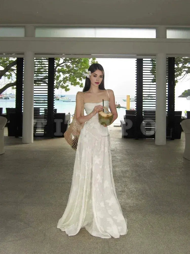 Wholesale Vintage A Line Spaghetti Straps White Lace Long Evening Dress Prom Dresses gowns evening dresses  - US 2 / UK 6 / EU 32