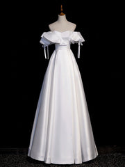 Wholesale White A-Line Satin Long Prom Dresses White Evening Dresses gowns evening dresses - US 2 / UK 6 / EU 32