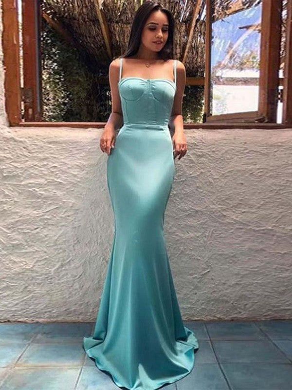 Wholesale Sheath/Column Sleeveless Satin Spaghetti Straps Ruffles Floor-Length DressesRegular price $259.80