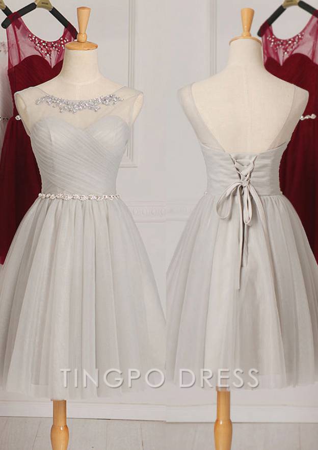 TingPo Wholesale A-Line/Princess Sleeveless Scoop Neck Knee-Length Tulle Bridesmaid Dress With Beaded - US 2 / UK 6 / EU 32