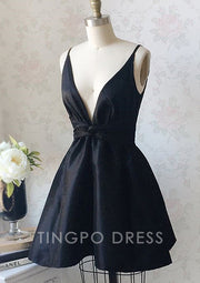 TingPo Wholesale A-line V Neck Sleeveless Taffeta Short/Mini Homecoming Dress With Ruffles