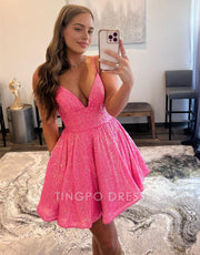 TingPo Wholesale Elegant A-Line Fuchsia Corset Back Glitter Homecoming Dress formal wear dresses