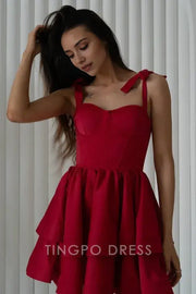 TingPo Wholesale Elegant A-Line Sweetheart Neck Straps Sleeveless Tiered Lace Up Mini Party Dress Homecoming Dress Evening Gown formal wear dresses