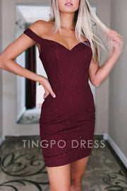 TingPo Wholesale Elegant Cabernet Off the Shoulder Bodycon Homecoming Dress formal wear dresses