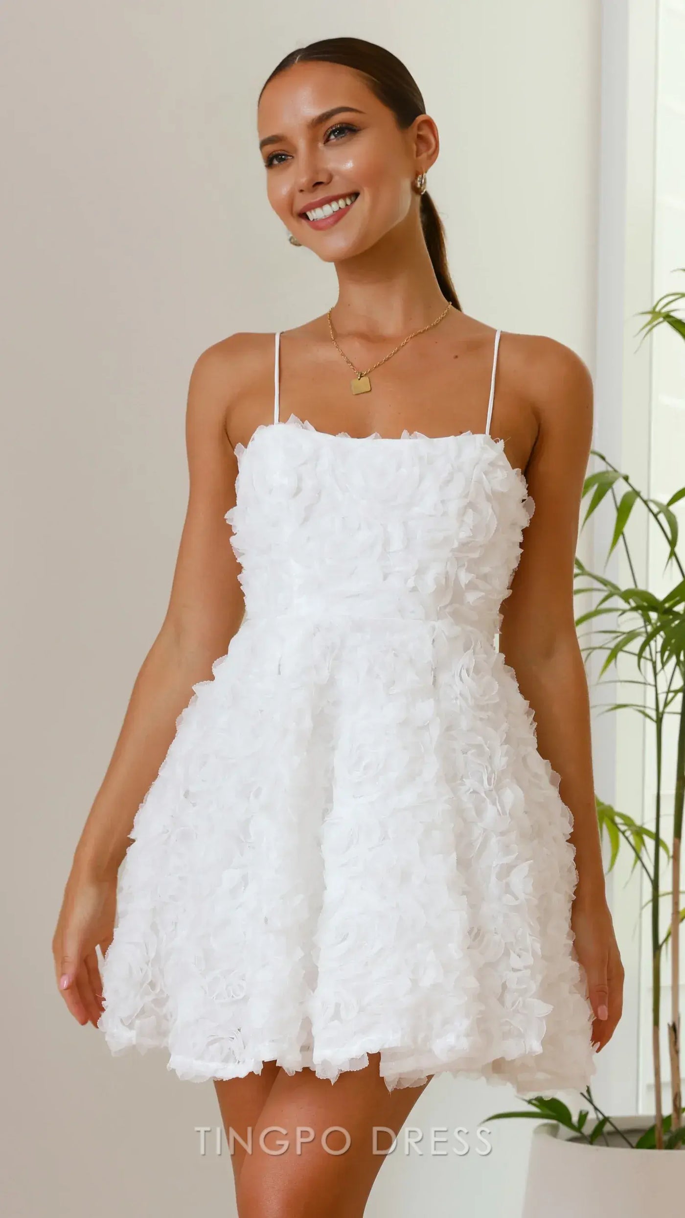 TingPo Wholesale Elegant Homecoming Dresses Mini Dress - White Textured floral formal hot sale for women