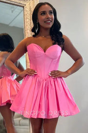 TingPo Wholesale Elegant Hot A-Line Strapless Sleeveless Pleated Back Zipper Short Homecoming Dress Mini Evening Party Dress formal wear dresses