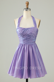 TingPo Wholesale Elegant Purple Halter Open Back Sleeveless A Line Homecoming Dress formal wear dresses