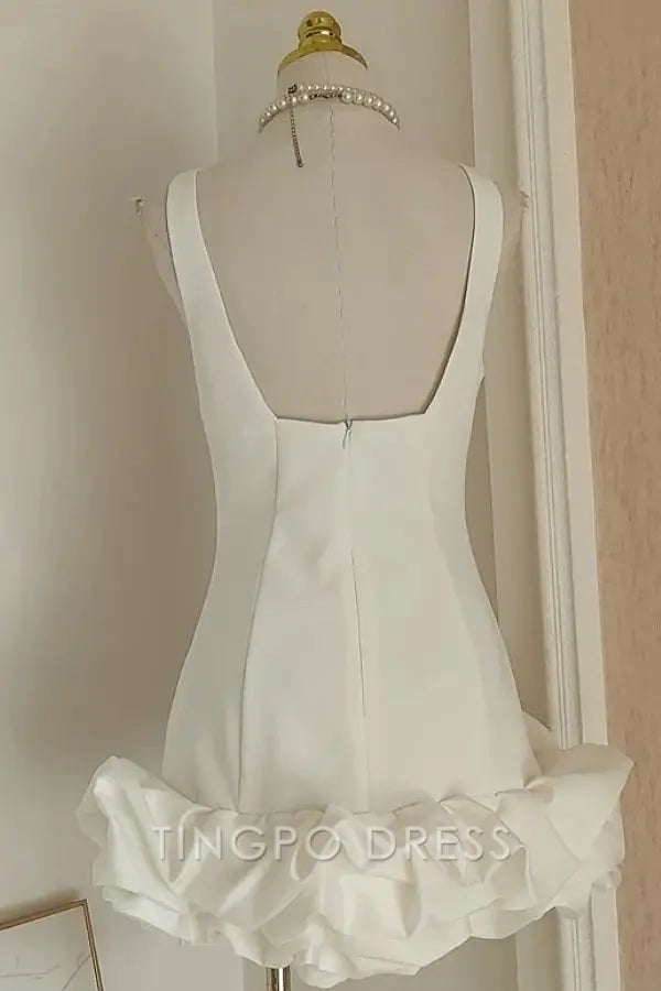 TingPo Wholesale Elegant Sheath ScoopNeck Straps Sleeveless Backless Back Zipper Ruched Mini Homecoming Dress Short Evening Dress Birthday Party Dress formal wear dresses