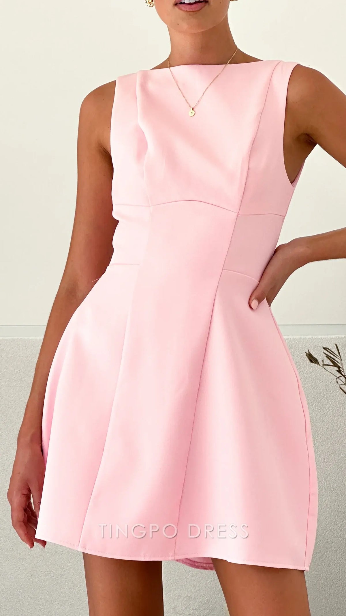 TingPo Wholesale Simple Homecoming Dresses A-Line Mini Dress High neckline formal Baby Pink hot sale for women