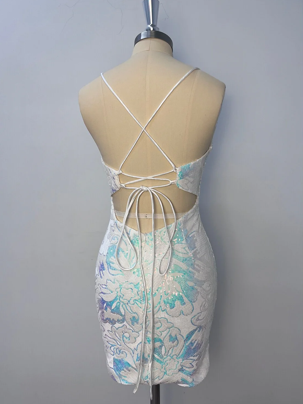 Wholesale Sheath / Column Homecoming Dresses Floral Dress Graduation Cocktail Party Short / Mini Sleeveless Spaghetti Strap Tulle with Glitter - US 2 / UK 6 / EU 32
