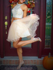 Wholesale Two Piece A-Line Homecoming Dresses Sparkle & Shine Dress Holiday Graduation Short / Mini Sleeveless Halter Neck Tulle with Glitter Beading - US 2 / UK 6 / EU 32