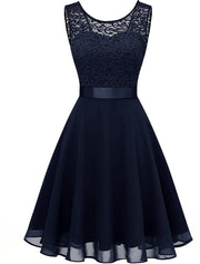 Wholesale Women‘s Party Dress Lace Dress Knee Length Dress Pink Red Wine Dark Blue Red White Black Sleeveless Pure Color Lace Spring Summer Crew Neck Elegant - Dark Blue / US 2 / UK 6 / EU 32