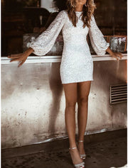 Wholesale Women's Velvet Sequin Party Dress White Sequin Dress Mini Dress Long Sleeve Black Sequins Spring Fall Winter Crew Neck Fashion Party Winter Dress Birthday Prom - White / US 2 / UK 6 / EU 32