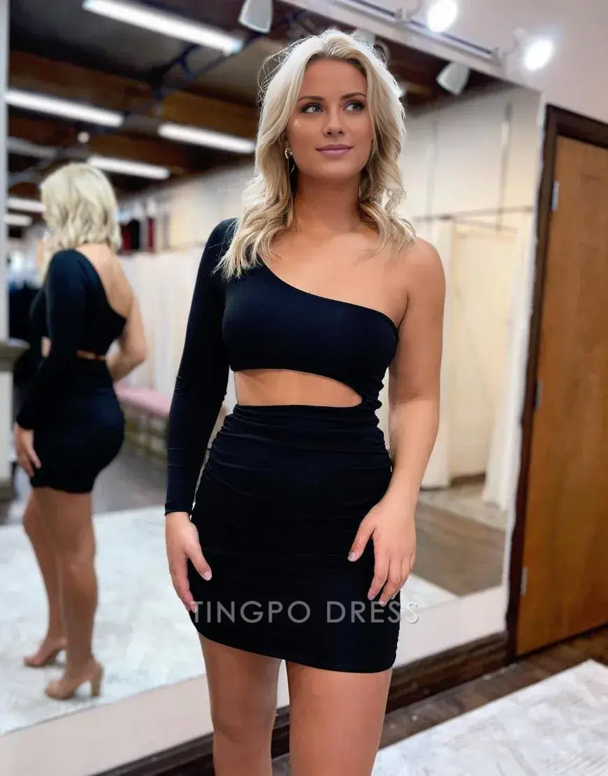 TingPo Wholesale Black One Shoulder Cutout Waist Tight Homecoming Dress formal wear dressesRegular price $108.99