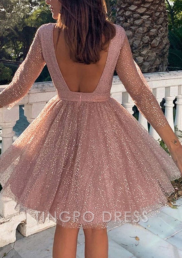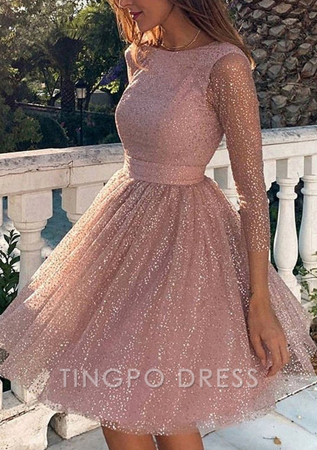 TingPo Wholesale A-line Scoop Neck Full/Long Sleeve Metallic Yarn Short/Mini Homecoming Dress With GlitterRegular price $129.88