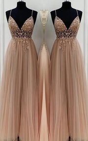 TingPo Wholesale Elegant A-Line/Elegant Beading Tulle Spaghetti Straps Sleeveless Floor-Length Prom Dresses