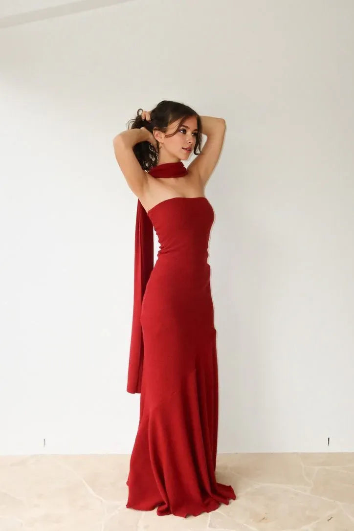Wholesale Pretty Mermaid Strapless Burgundy Long Prom Dress Evening Dresses gowns evening dresses - US 2 / UK 6 / EU 32