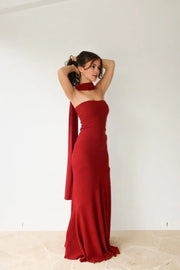 Wholesale Pretty Mermaid Strapless Burgundy Long Prom Dress Evening Dresses gowns evening dresses