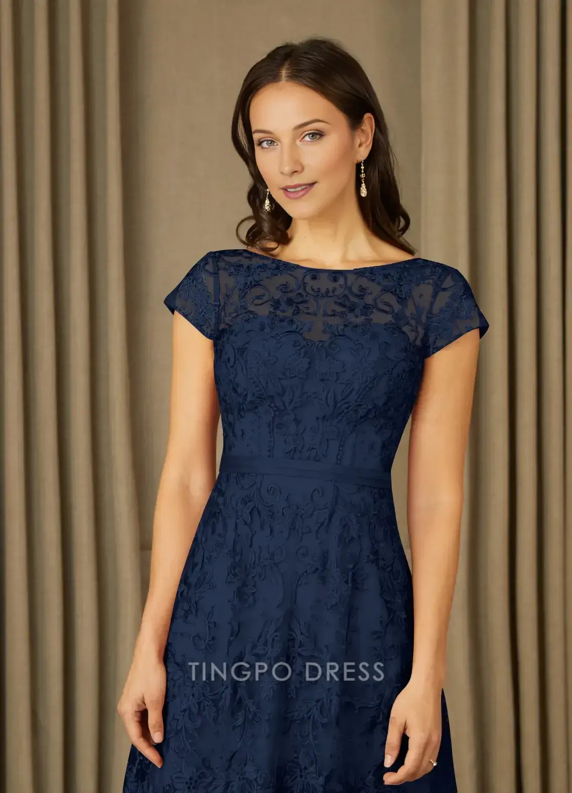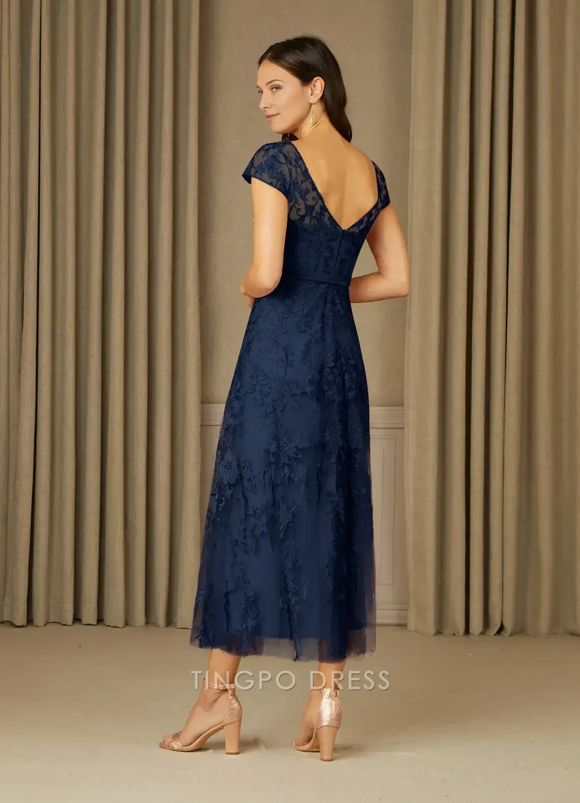 TingPo Wholesale Elegant Mother of the Bride Dresses Dark Navy A-Line Scoop Lace Tulle Dress Dress hot sale for ladies