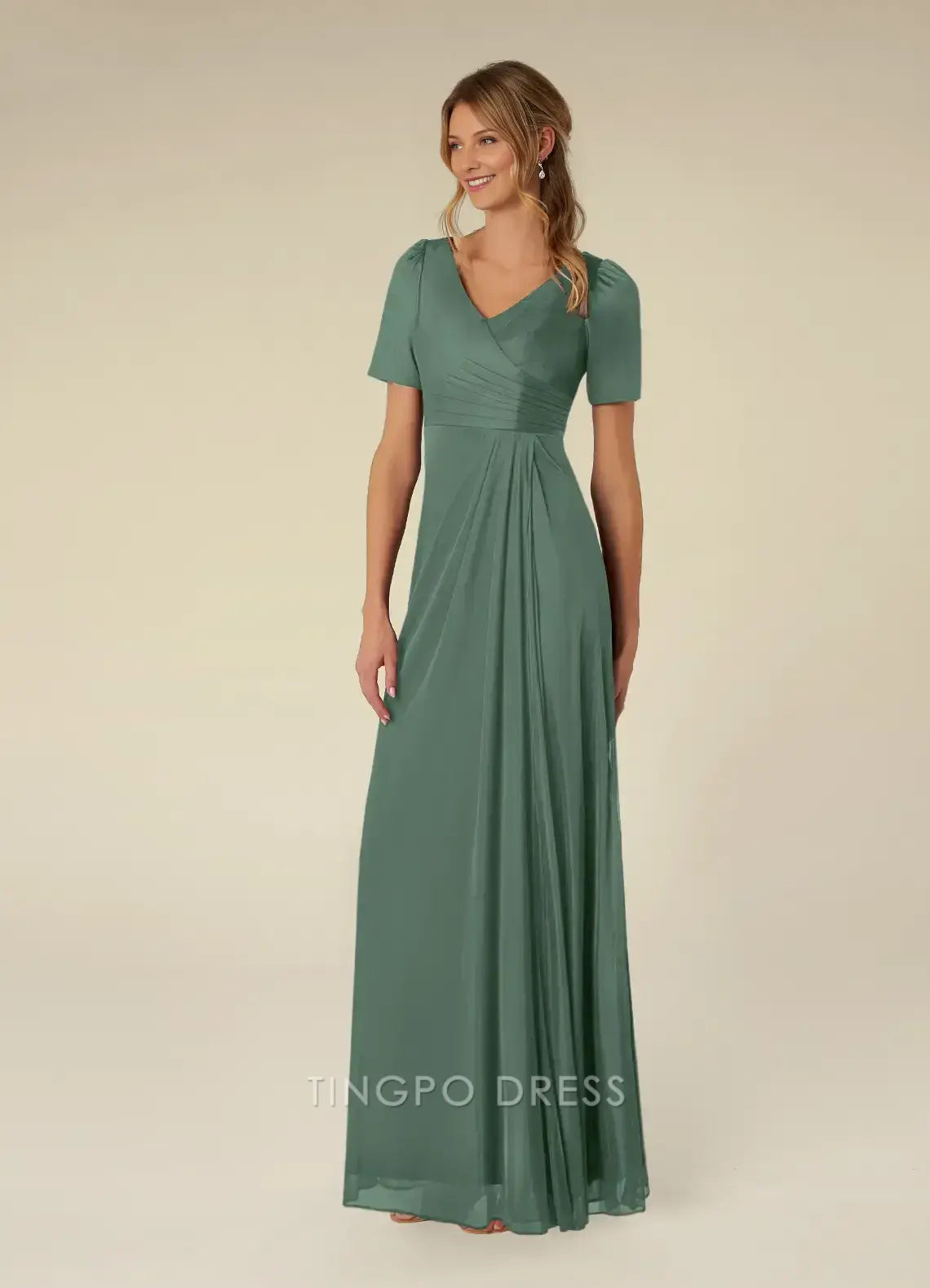TingPo Wholesale Elegant Mother of the Bride Eucalyptus A-Line Pleated Mesh Dress hot sale for ladies - US 2 / UK 6 / EU 32