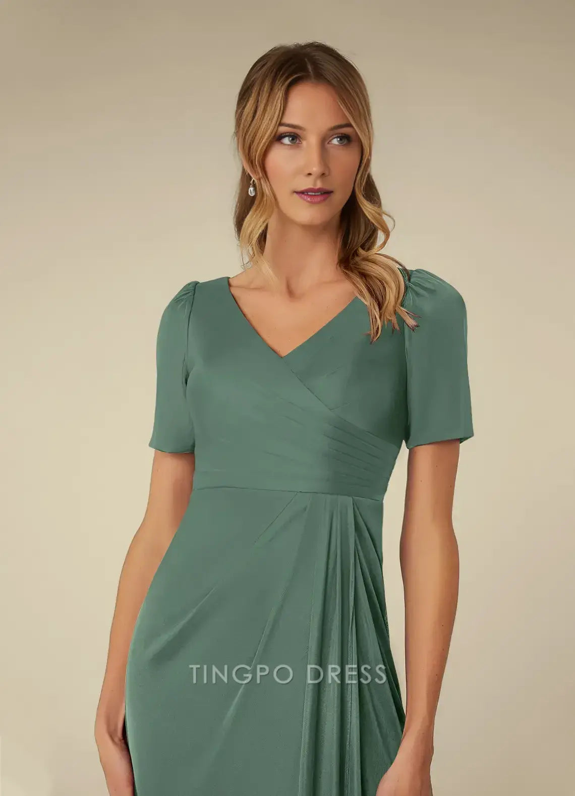 TingPo Wholesale Elegant Mother of the Bride Eucalyptus A-Line Pleated Mesh Dress hot sale for ladies