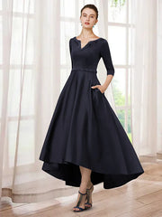 Wholesale A-Line Mother of the Bride Dress Elegant High Low V Neck Asymmetrical Tea Length Satin Half Sleeve with BeadingA-Line Mother of the Bride Dress Elegant High Low V Neck Asymmetrical Tea Length Satin Half Sleeve with Beading - US 2 / UK 6 / EU 32