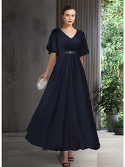 Wholesale A-Line Mother of the Bride Dress Elegant V Neck Ankle Length Chiffon Half Sleeve with Pleats Crystal Brooch - US 2 / UK 6 / EU 32