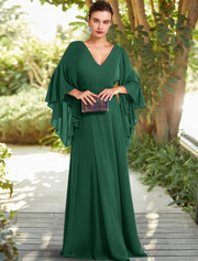 Wholesale A-Line Mother of the Bride Dress Formal Wedding Guest Elegant V Neck Floor Length Chiffon 3/4 Length Sleeve with Ruched