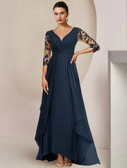Wholesale  A-Line Mother of the Bride Dress Wedding Guest Elegant High Low V Neck Ankle Length Chiffon Lace 3/4 Length Sleeve with Sequin Appliques
