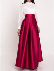 Wholesale A-Line Mother of the Bride Dress Wedding Guest Elegant Jewel Neck Ankle Length Satin Long Sleeve with Ruching - US 2 / UK 6 / EU 32