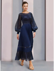Wholesale A-Line Mother of the Bride Dress Wedding Guest Elegant Scoop Neck Ankle Length Chiffon Lace Long Sleeve with Ruching Solid Color - US 2 / UK 6 / EU 32