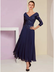 Wholesale A-Line Mother of the Bride Dress Wedding Guest Elegant V Neck Ankle Length Chiffon 3/4 Length Sleeve with Lace Pleats Sequin - US 2 / UK 6 / EU 32