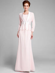 Wholesale Mermaid / Trumpet Mother of the Bride Dress Convertible Dress Scoop Neck Floor Length Chiffon Long Sleeve Wrap Included with Sash / Ribbon